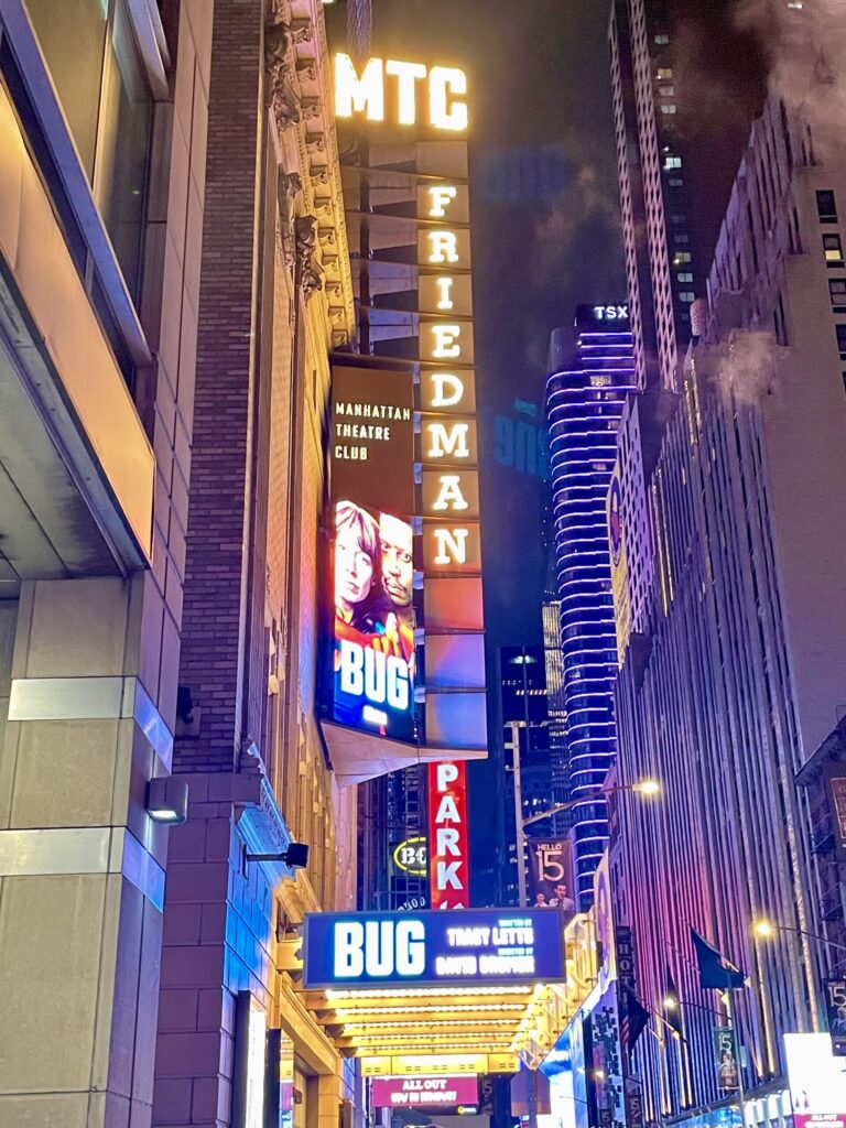 Bros may think there is nothing edgy, tough, or “dude, what the fuck?” about Broadway. But there is. There is lots of all of that. The uninitiated may see Broadway only in terms of jazz hands and men in tights dancing with canes or maybe some “prestige” drama. Bug isn’t that. Not even close. Bug is a visceral, high-octane assault on the senses. It deals with the very things we’re seeing in our social media feeds every day: the death of objective truth, the way trauma makes us vulnerable to lies, and the terrifying speed at which a person can lose their grip on reality.