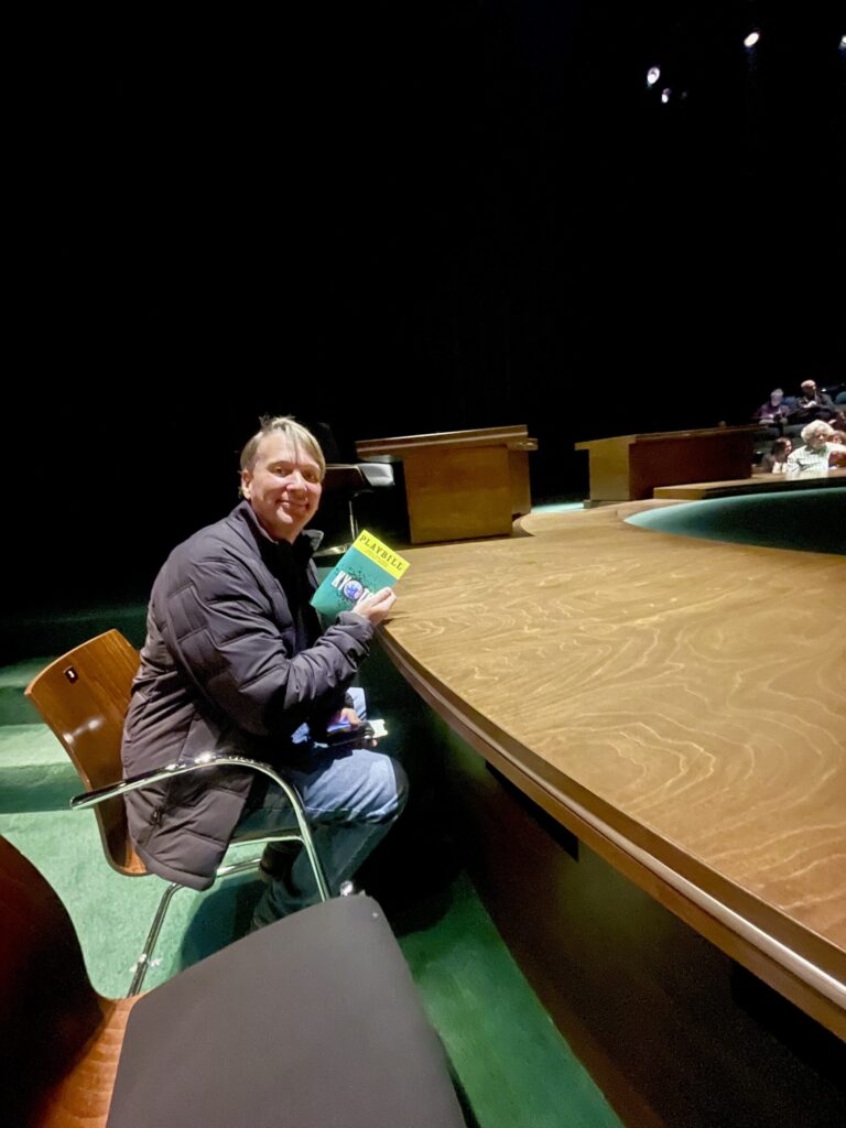 Actors made eye contact with us and gestured at us as they passionately debated the world’s most existential threat, climate change, while defending the interest of their global constituents. We nodded on cue as they guffawed, grimaced, and shuffled papers that held the consequential complexities of policy implications. I am convinced the show ran especially smoothly that night because of our subtle but vital support. It was surreal, exhilarating, and—for this introvert—mildly panic-inducing in the best possible way. After I sat down I looked up at hundreds of people looking down at me. I’m not used to that. But I digress.
