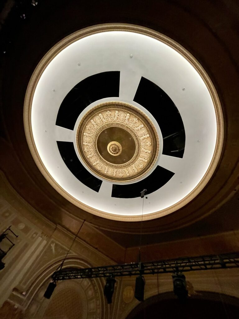 The Samuel J. Friedman Theatre is a restored 1925 Broadway house originally designed by architect Herbert J. Krapp for the Chanin brothers. The style reflects a mixture of neoclassical and Adam Revival influences, with elegant plasterwork, arches, and a domed ceiling. During the 2003 renovation, the seating capacity was reduced to around 600 to improve sightlines and create a more intimate environment. The auditorium’s warm cream and bronze tones, combined with soft lighting and intricate molding, evoke the elegance of the early twentieth century while maintaining a sense of modern comfort. The lobby was redesigned to include accessible restrooms, elevators, and spacious gathering areas, making it one of Broadway’s most welcoming houses. The theatre’s relatively small size gives audiences a closer connection to the performances, an intentional choice that aligns with MTC’s belief in the power of human-scale storytelling.