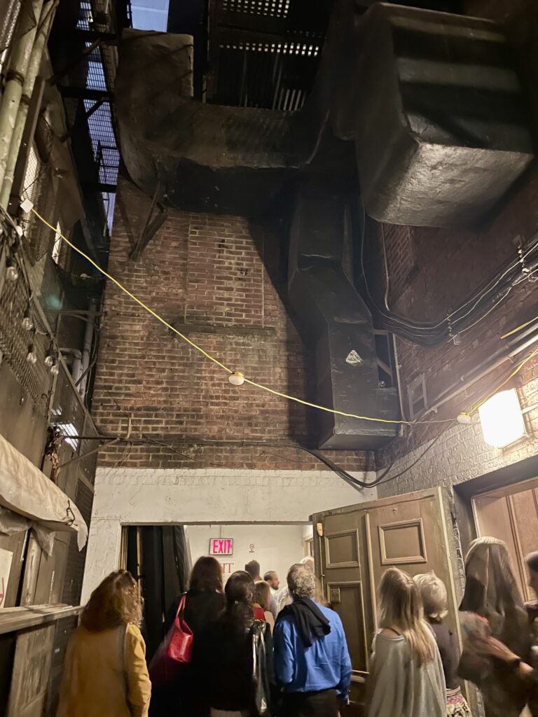 One of the quirks of attending a show at the Music Box Theatre comes not during the performance, but as you leave. The theater’s side exit doors funnel audiences into a narrow alleyway tucked between two buildings. Unlike the grand front entrance on West 45th Street, this passageway feels secretive, almost like slipping backstage into Broadway’s hidden architecture.